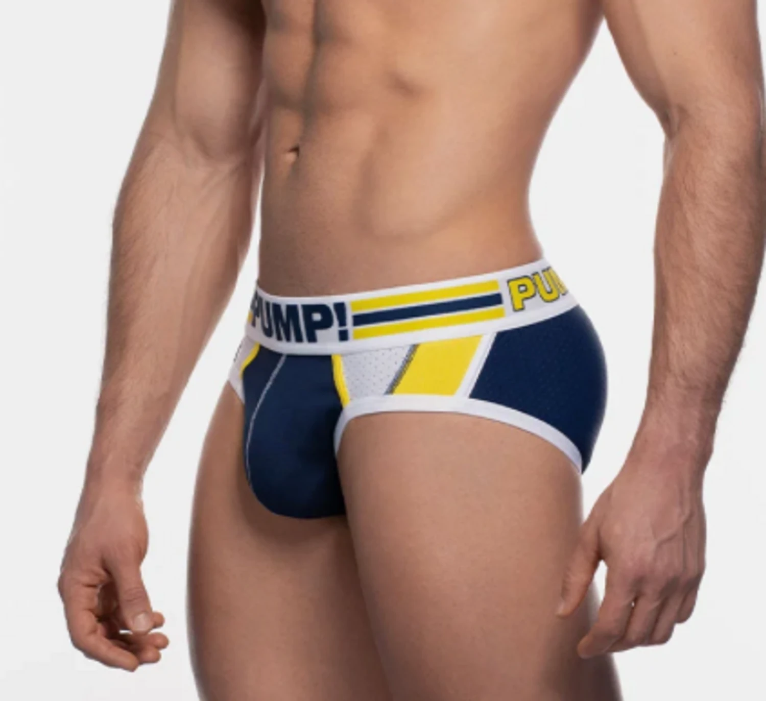 RECHARGE Briefs really highlight a combination of use in fabrics. its multi panel body is comprised of various colors in both cotton and mesh along with contrasted piping and stitching on angles that accentuate the body. The mesh backside and pouch deliver comfort and breathability. Topped by the PUMP! signature waistband, this brief is the recharge you needed.