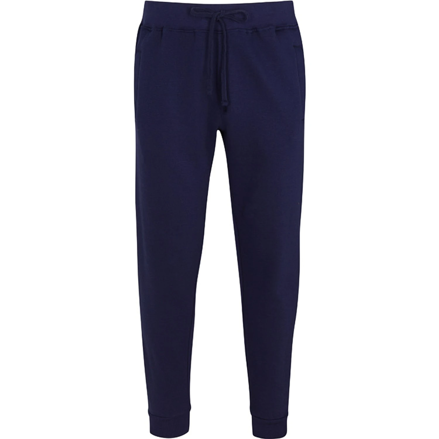 This fleece jogger pant features a comfortable elasticated waist with a drawstring, off-seam pockets, tapered leg, and a cuffed rib bottom for a modern look. Two side pockets and a back pocket.